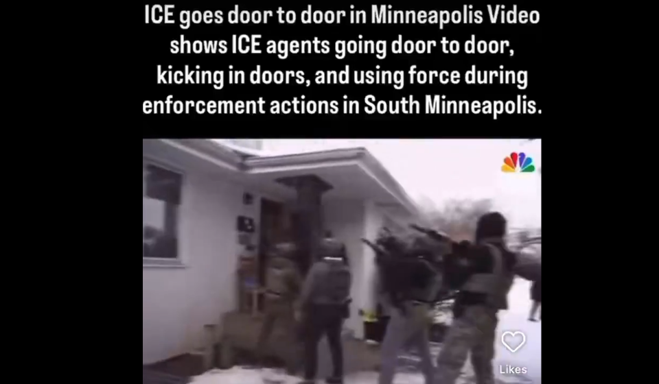 According to footage from CNBC, it is no longer just a proposition out of the mouth of JD Vance. ICE agents are going door to door, kicking in doors, and breaking into peoples homes in Minneapolis. Th...
