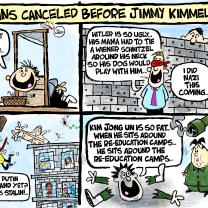 I had just finished this cartoon and was waiting on one of my proofers to give it the all-clear from typos when the news about Jimmy Kimmel came down.